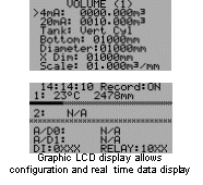 • Level, Volume and Flow. Various standard tanks/weirs/flumes or custom tables can be selected. Totalizer functionality is provided for each channel.